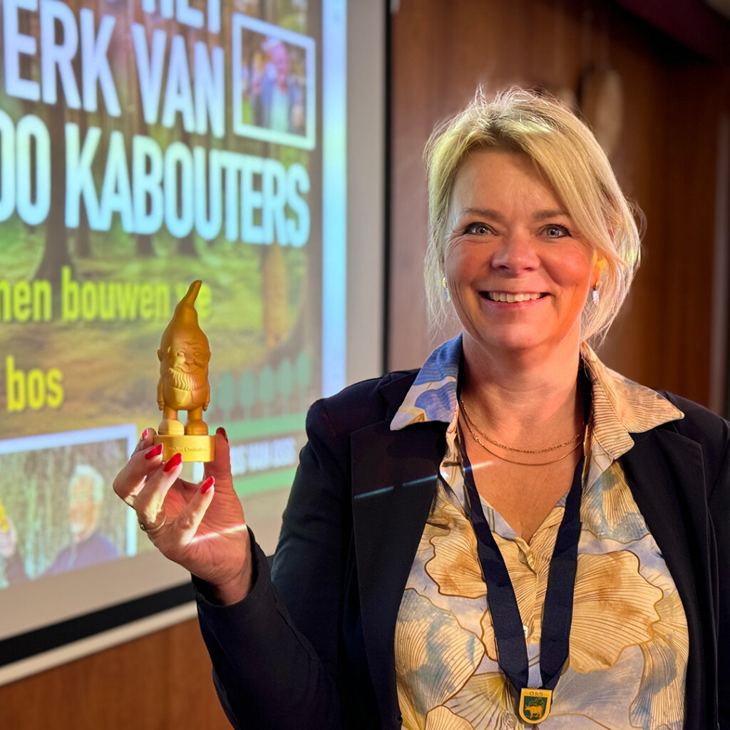 Als voorzitter van Rotary Oss-Maasland heeft Ivka Orbon een gouden Osskabouter ontvangen waarmee we dank willen uitspreken aan alle leden van deze Rotaryclub. Met de goed georganiseerde- en enthousiaste actie hebben ze veel ondernemers kunnen toevoegen aan de lijst van ondersteuners is een heel belangrijke bijdrage geleverd aan de totstandkoming van het Bos van Oss.